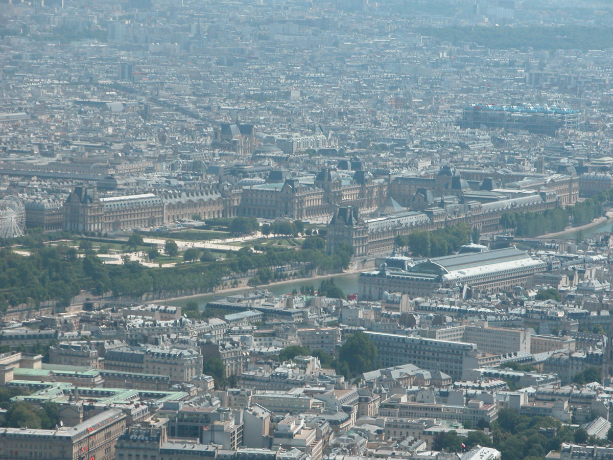 le Louvre, le Musée d'Orsay et le Centre Pompidou (vue du 3ème étage de la Tour Eiffel)