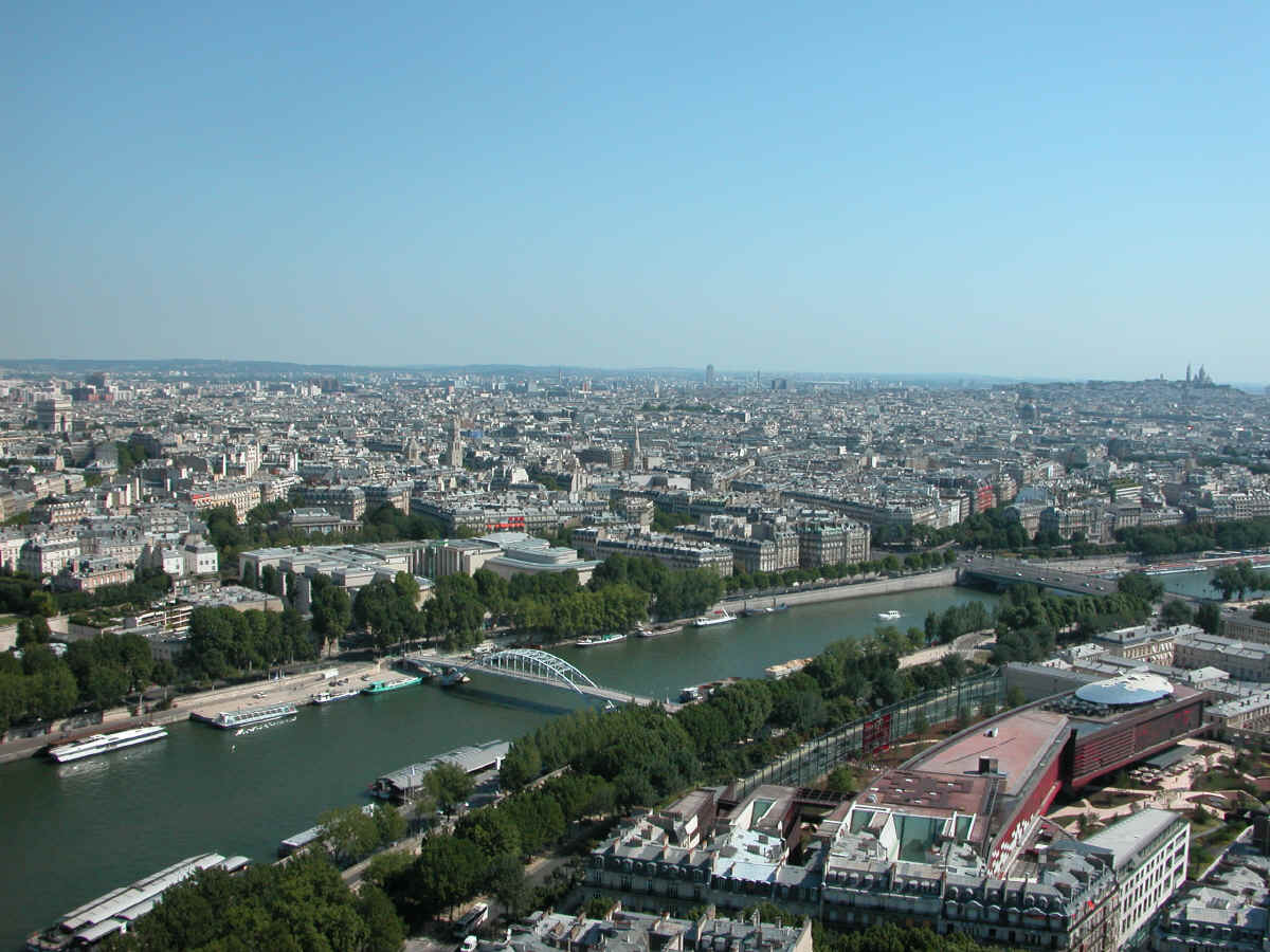 entre l'Arc de Triomphe et Sacré Coeur (on aperçoit l'église St Pierre de Chaillot, la Cathédrale Américaine, le Palais de Tokyo, la passerelle Debilly, le pont d'Alma, le nouveau musée Quai Branly ) |